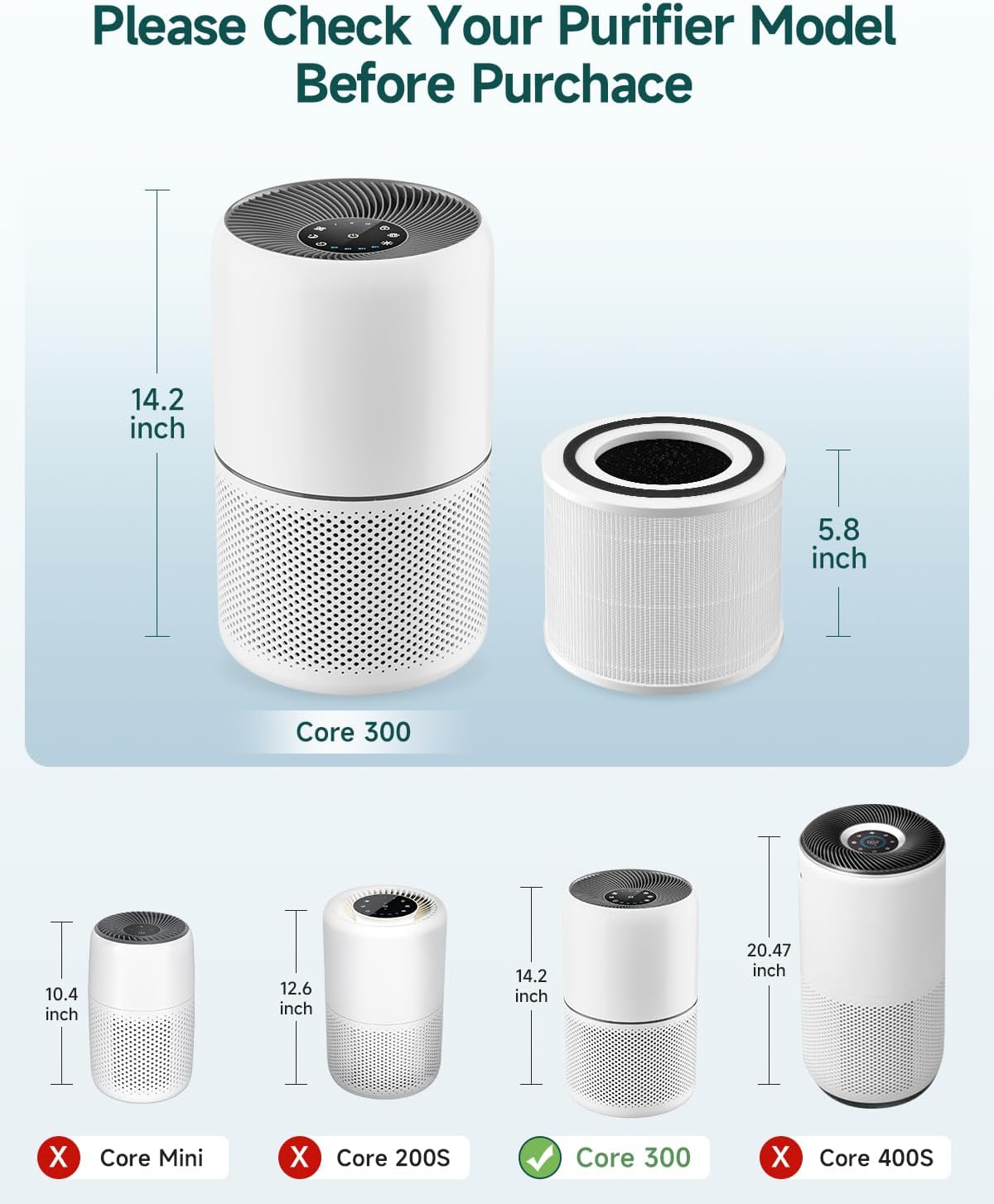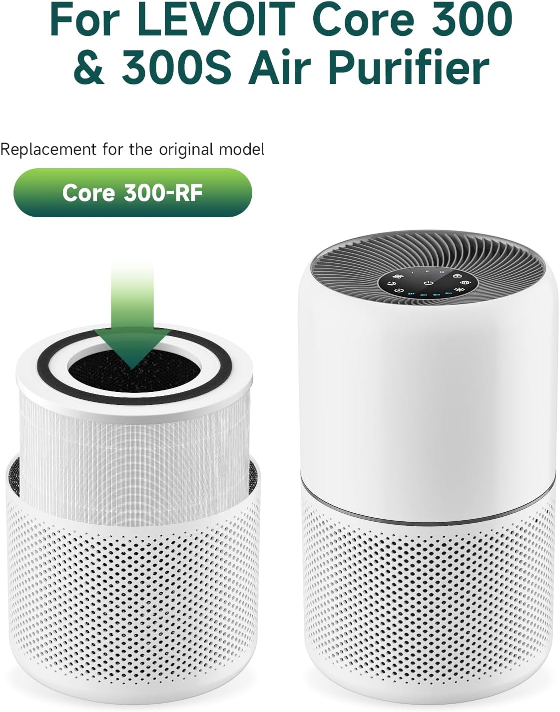 2-Pack Core 300 Replacement Filter Compatible with LEVOIT Core 300 and Core 300S Air Purifier, H13 True HEPA & Activated Carbon, Replace Core300-RF, White