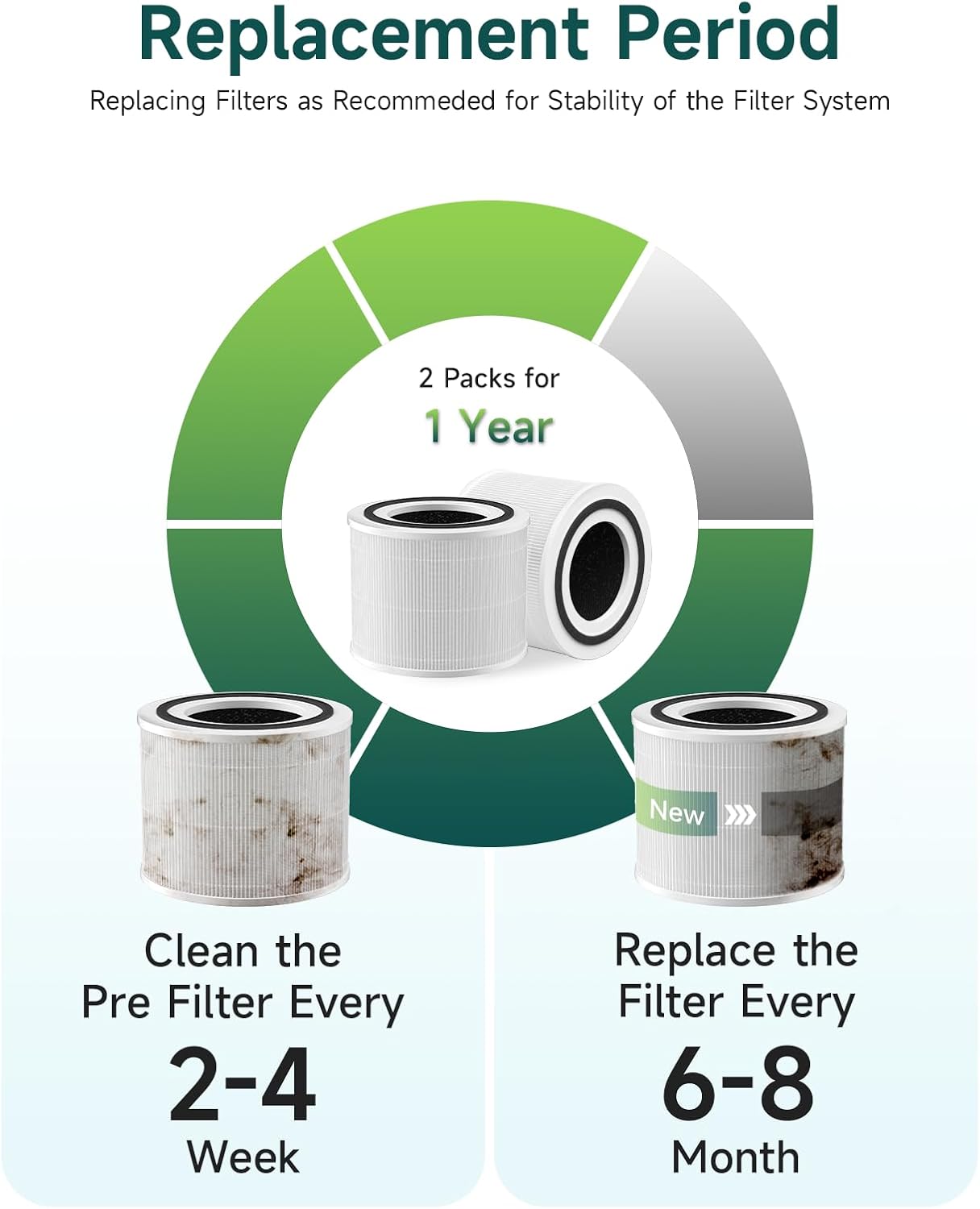 Each filter is designed to last for up to 6-8 months, depending on usage, providing long-lasting performance and clean air for your home or office. The white color of the filters complements the sleek design of the LEVOIT air purifiers, ensuring a seamless fit and optimal performance.