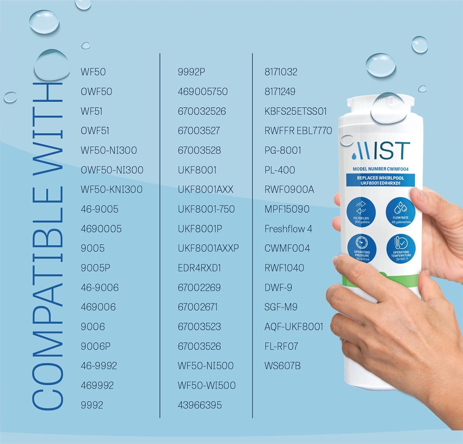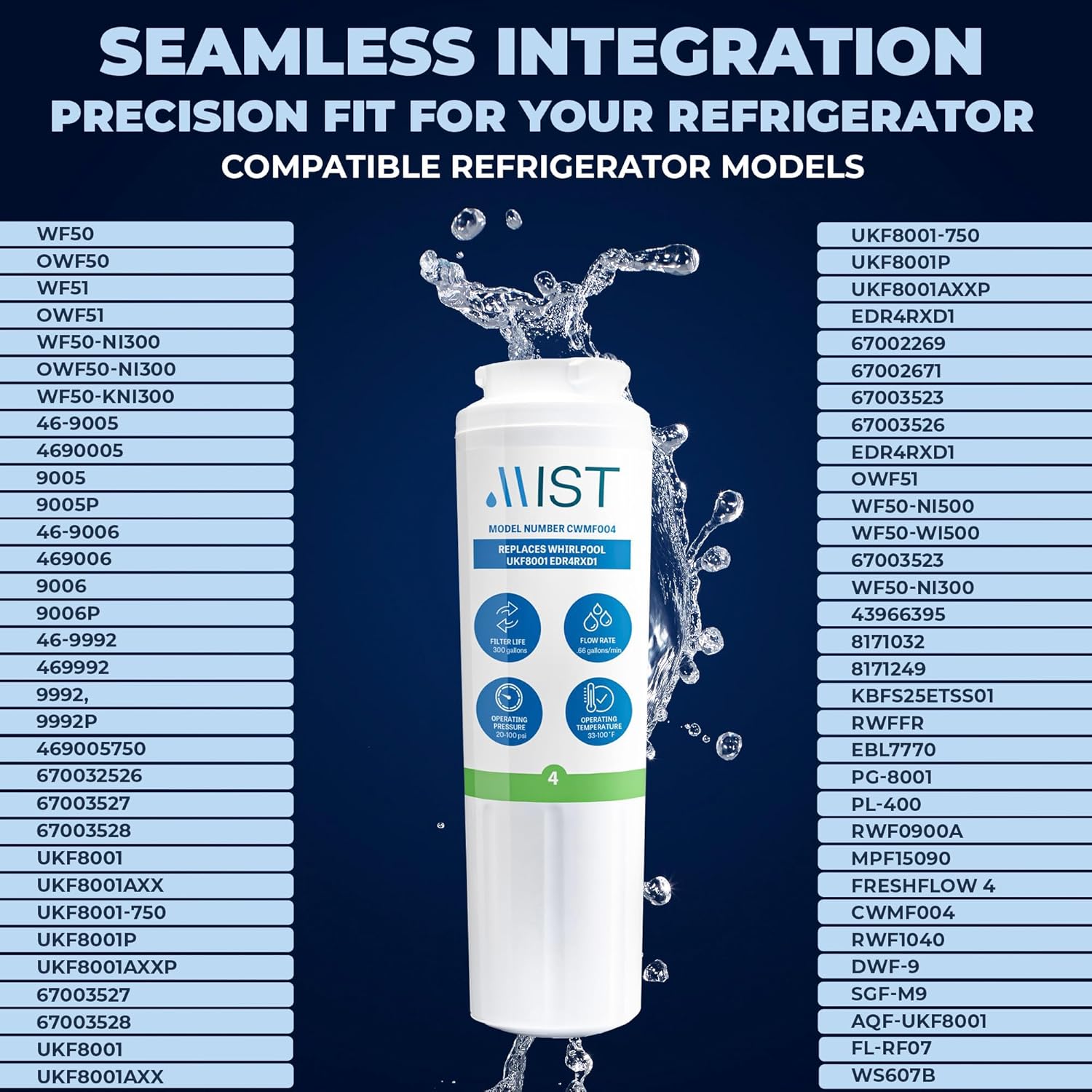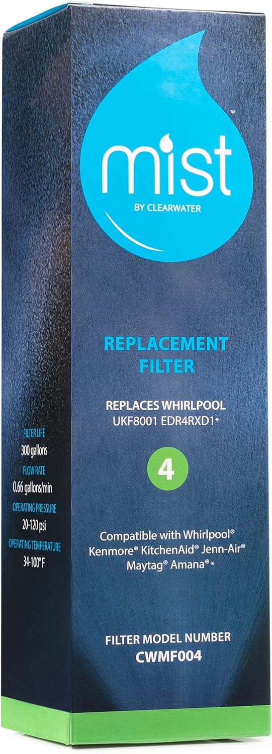 Mist UKF8001 Filter 4 Replacement for Maytag, Whirlpool Filter 4 Everydrop EDR4RXD1, 4396395, Kenmore 46-9005, RWF0900A Refrigerator Water Filter (1 Pack)